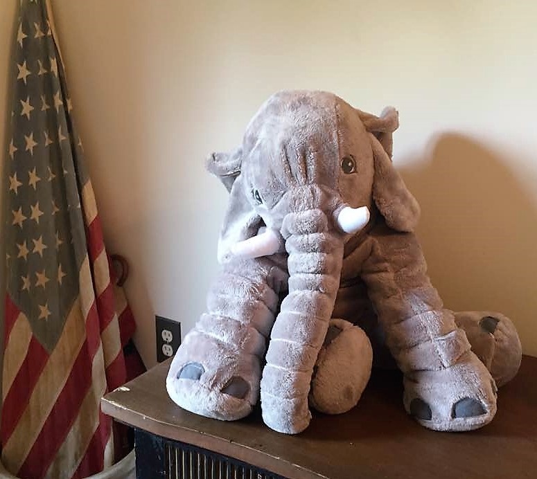 The white elephant is a bank found at a thrift store and the two Celedon elephants were from a Thai friend and fit the theme so they were part of the decor.